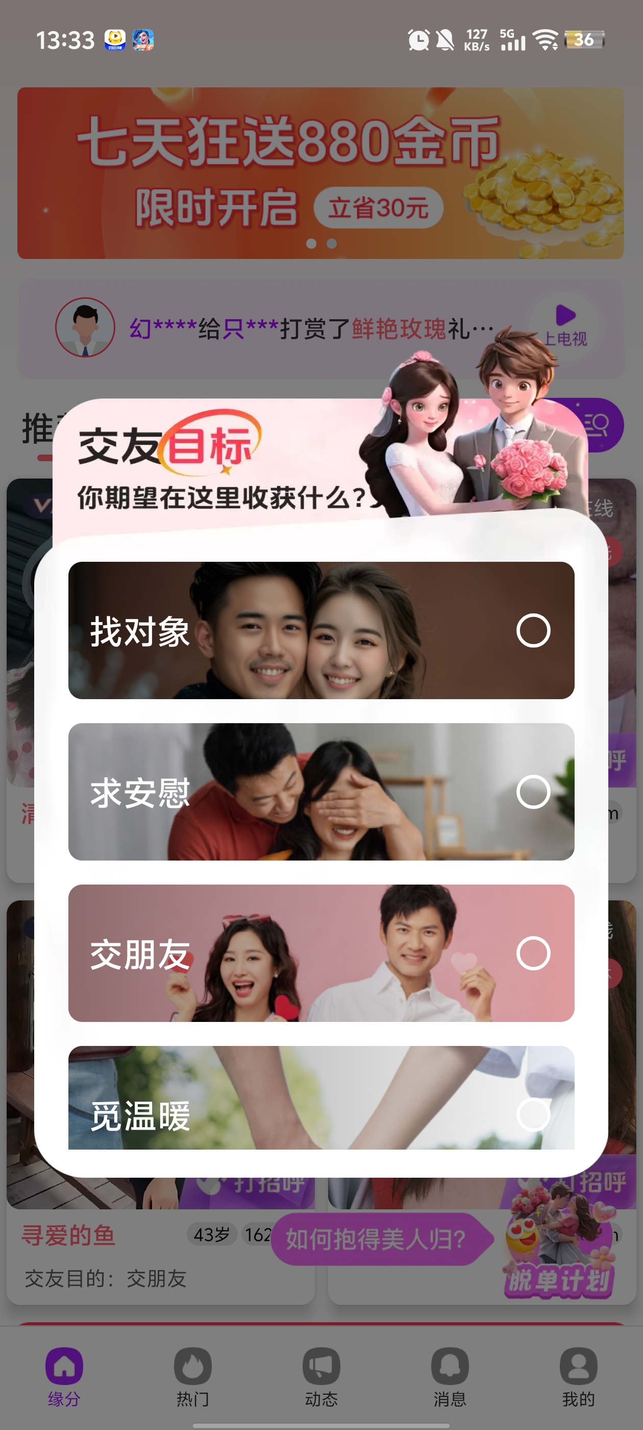 智能匹配算法:核心功能,根据用户的兴趣爱好、交友目的、个性标签等信息,智能推荐志趣相投的陌生伙伴。